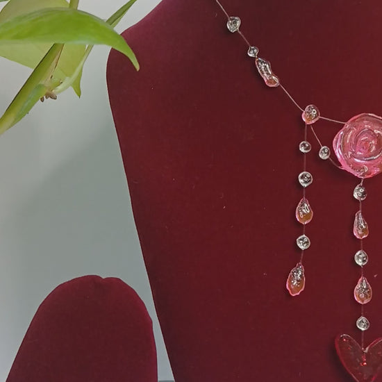 Celebrate a love that flows with the Amore Cascade, a highlight of our Valentine’s Collection. This enchanting, handcrafted necklace features a soft blush-pink rose centrepiece that gives way to elegant, shimmering droplets.